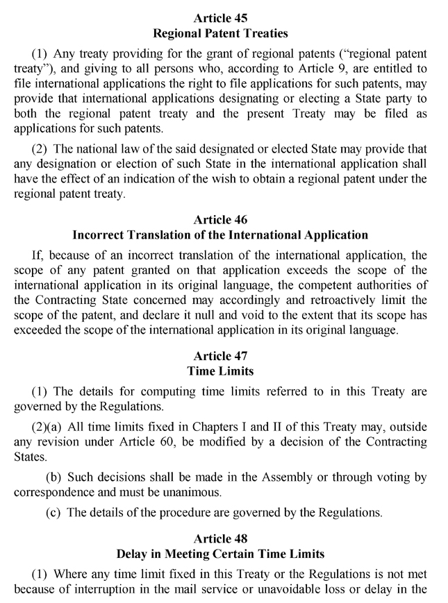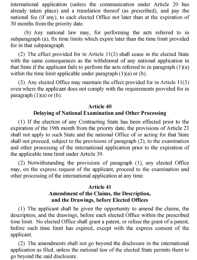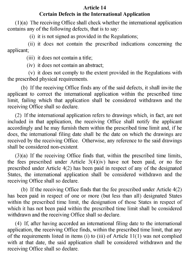 i) tai nav saistoši 39. panta 1. punkta noteikumi attiecībā uz starptautiskā pieteikuma eksemplāra un tā tulkojuma (kā paredzēts) nosūtīšanu,