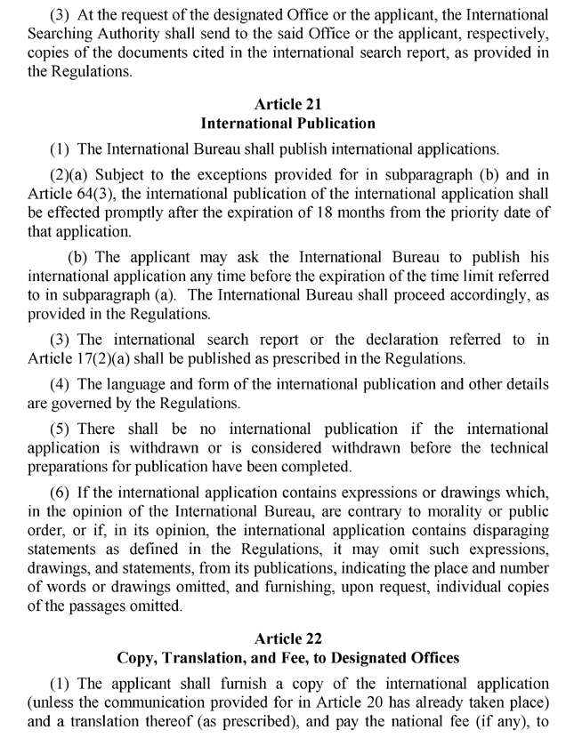 b) Ja pēc 18 mēnešu termiņa izbeigšanās kopš prioritātes datuma starptautiskajā pieteikumā ir norādītas tikai tādas valstis, kas iesniegušas a) apakšpunktā minēto deklarāciju, starptautisko pieteikumu saskaņā ar 21. panta 2. punktu nepublicē.