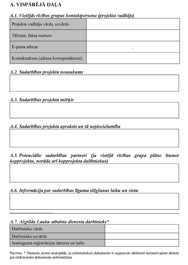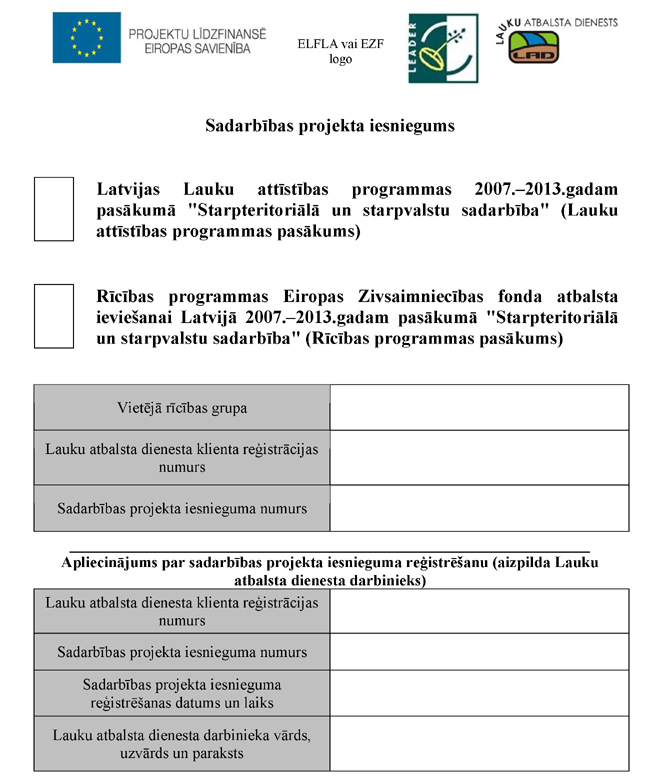 12. Lai saņemtu atbalstu sadarbības līguma noslēgšanai, vietējā rīcības grupa iesniedz dienestā iesniegumu (1.pielikums) atsevišķi par Lauku attīstības programmas pasākumu un par Rīcības programmas pasākumu.