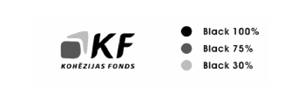 5. Lietojot KF logo melnbaltu, izmanto 3.attēlā norādītos krāsu toņus.
