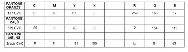 1. ERAF un ESF logo noteiktās krāsas dažādās krāsu sistēmās ir šādas: