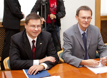 Dombrovskis un finanšu ministrs Andris Vilks tikās ar