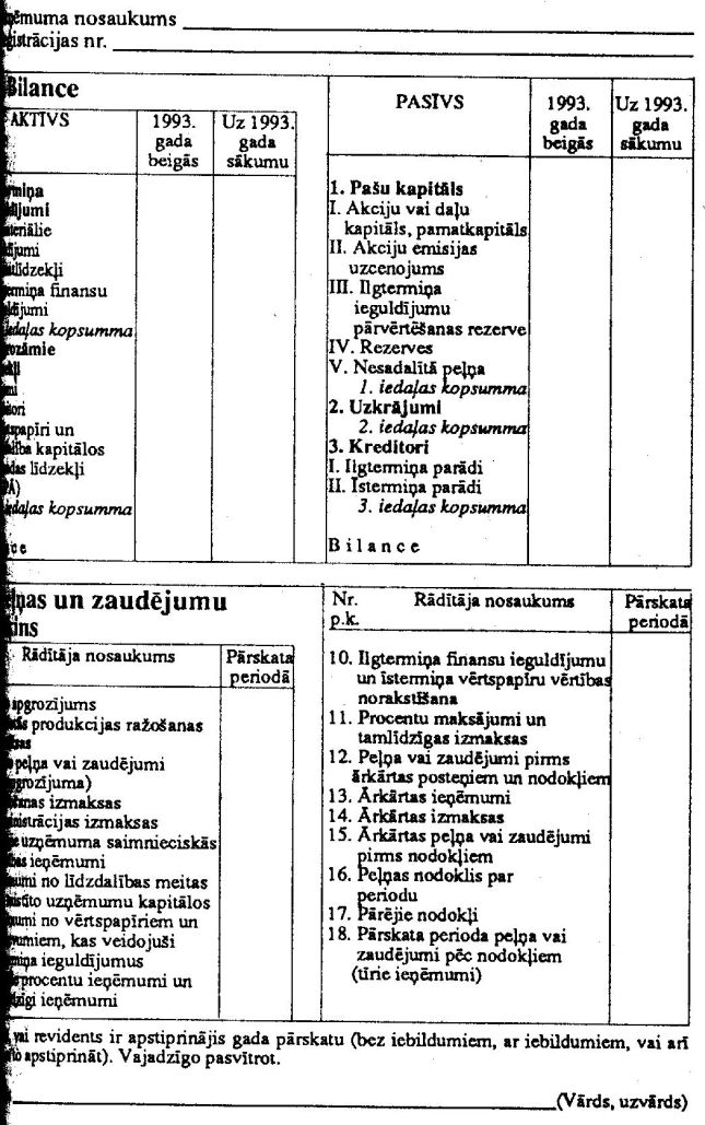 - bilances aktīva posteņu kopsumma - 0.15 milj. ECU (Ls 100 200 pēc Latvijas Bankas noteiktā kursa 1993.gada 31. decembrī);