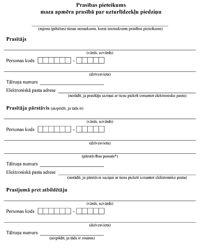 Noteikumi apstiprina šādas maza apmēra prasībā izmantojamās veidlapas: