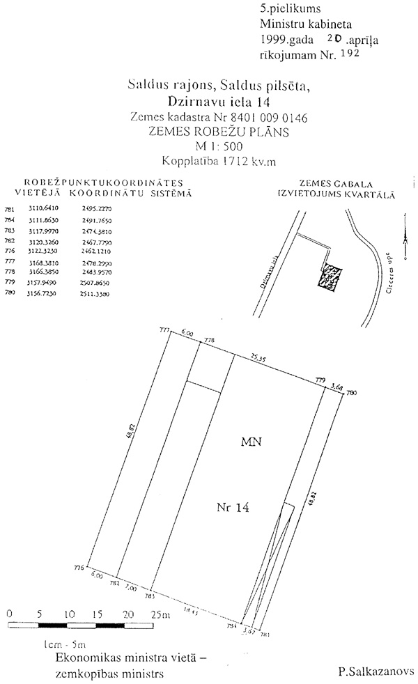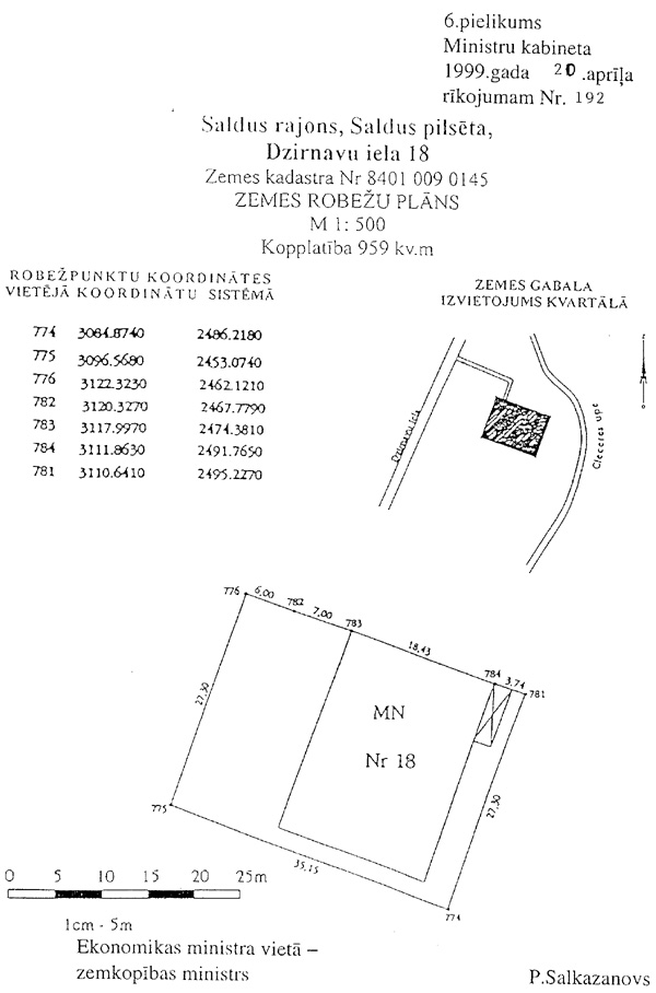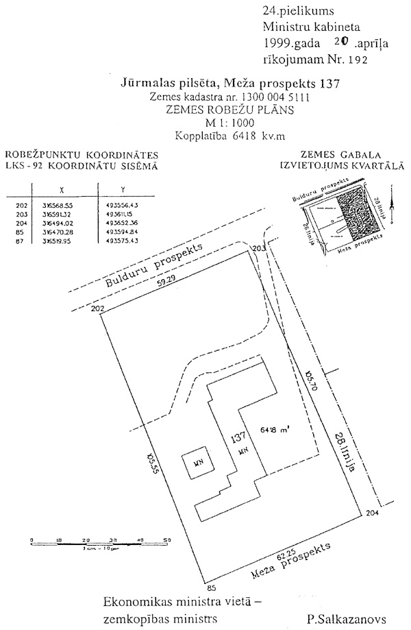 1999.gada 20.aprīļa rīkojumam Nr. 192