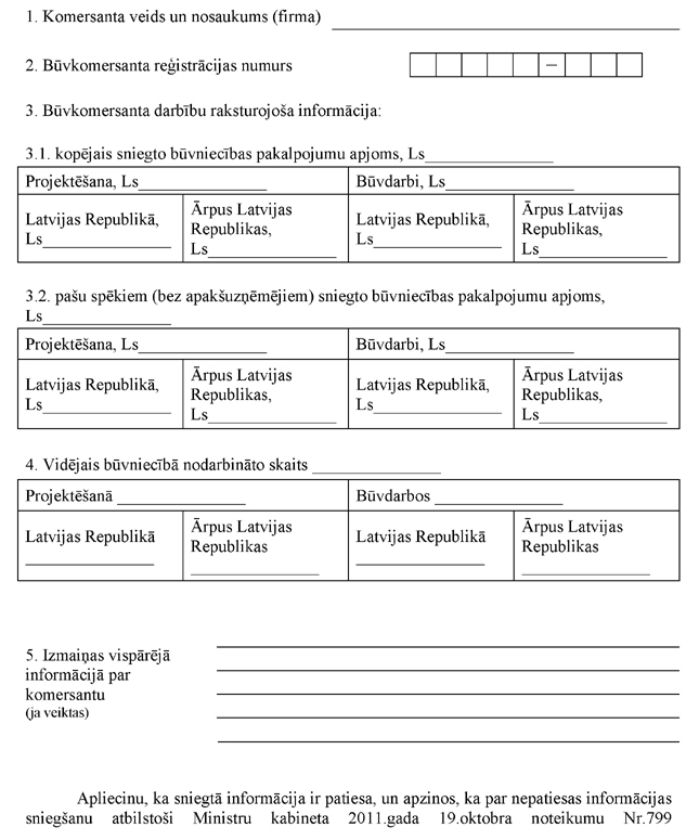 11. Būvkomersants reizi gadā līdz reģistra iestādes noteiktajam datumam iesniedz reģistra iestādē ikgadējās informācijas iesniegumu (2.pielikums).