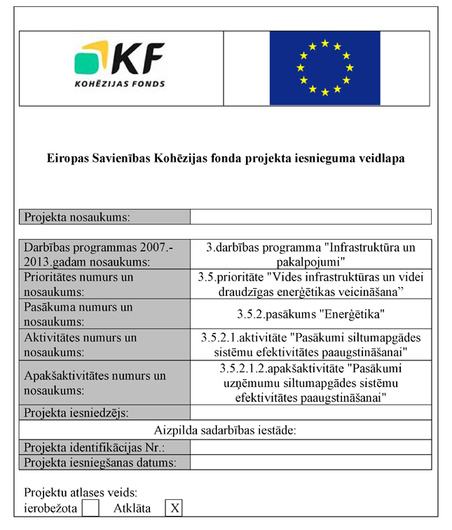 8.3. pirms sākta projektu iesniegumu iesniegšana, izstrādā, apstiprina un publicē tīmekļa vietnē (www.liaa.gov.lv) Eiropas Savienības Kohēzijas fonda projekta iesnieguma veidlapas (turpmāk – projekta iesnieguma veidlapa) aizpildīšanas metodiku, projektu iesniegumu atlases un vērtēšanas procedūras, projektu iesniegumu vērtēšanas veidlapu, līguma par Eiropas Savienības Kohēzijas fonda projekta (turpmāk – projekts) īstenošanu projektu un izdevumus apliecinošo dokumentu sarakstu;