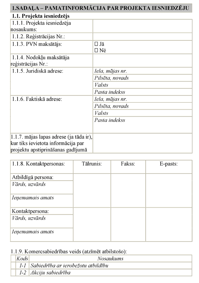 | 25. | Projekta iesnieguma veidlapa ir pilnībā aizpildīta |