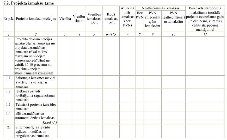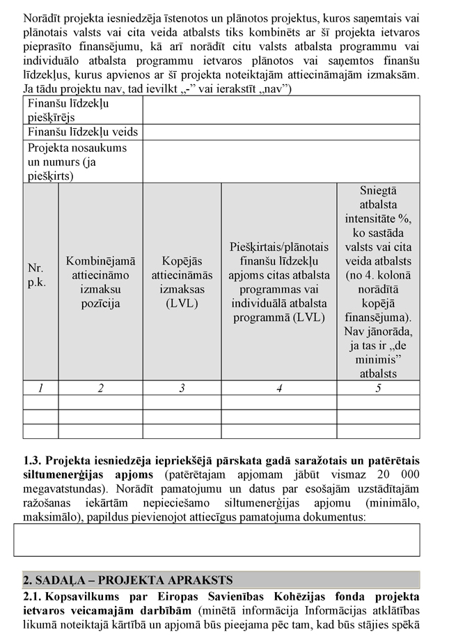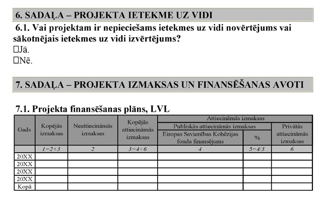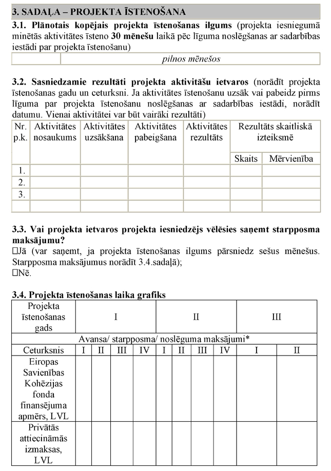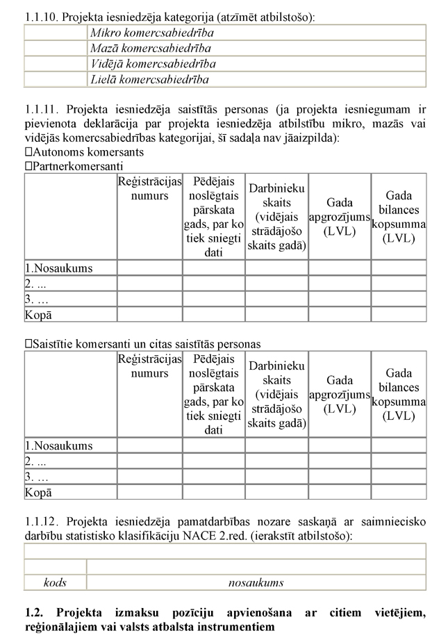 | 1. | Projekta iesnieguma gatavība tā iesniegšanas dienā |