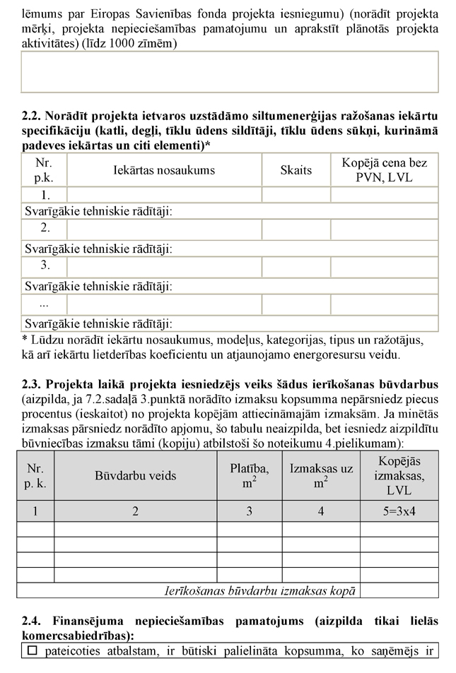 | 6. | Projekta iesniegumā ir paredzēti ieguldījumi tikai atjaunojamo energoresursu izmantošanai |