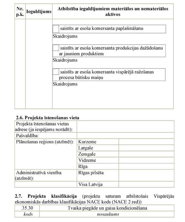 | 26. | Projekta iesniegumā nav neatrunātu labojumu – dzēsumu, aizkrāsojumu, svītrojumu vai papildinājumu (ja tas iesniegts papīra formā) |