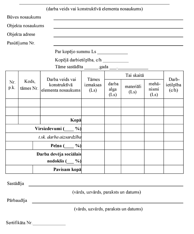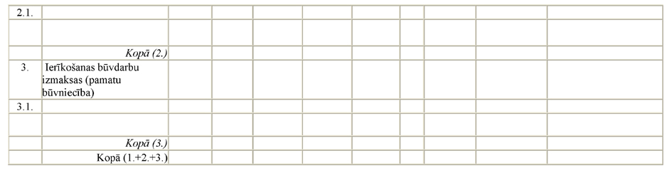 15.1.2. ietekmes uz vidi novērtējuma sagatavošanas izmaksas;