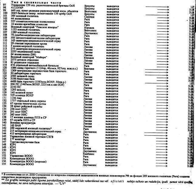 Krievijas Federācijas Bruņoto Spēku izvešanas grafiks no Latvijas Republikas teritorijas 1994.gadā. Publicēts oficiālajā laikrakstā "Latvijas Vēstnesis", 3.05.1994., Nr. 52 https://www.vestnesis.lv/ta/id/238708