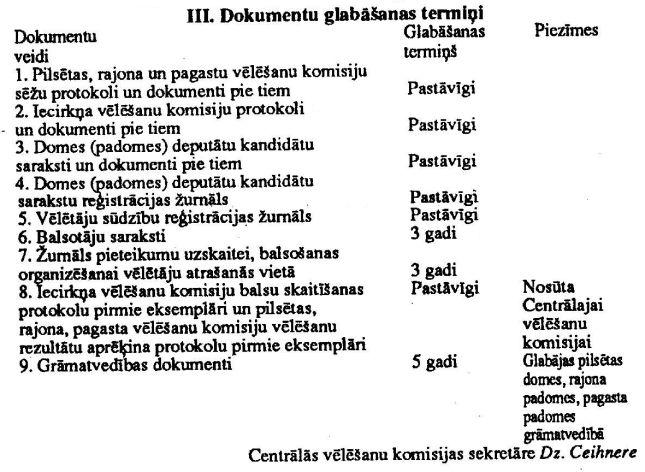 Apstiprināt "Instrukciju par pilsētas domes, rajona padomes un pagasta padomes vēlēšanu dokumentu sakārtošanu, glabāšanu un materiālo vērtību uzskaiti un glabāšanu".