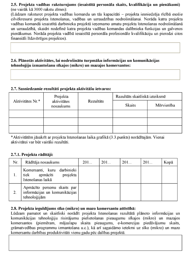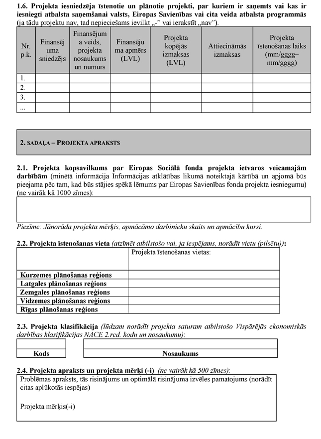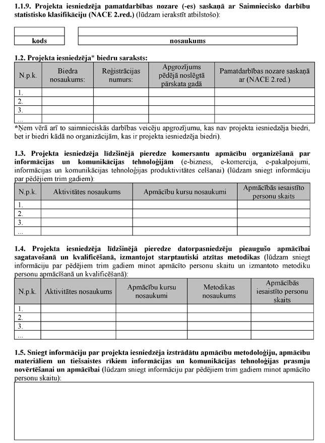 1.3. prasības projekta iesniedzējam;