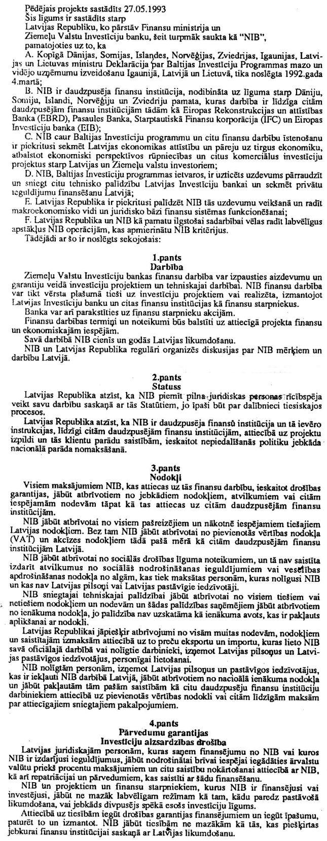 1. Akceptēt Latvijas Republikas un Ziemeļu Investīciju bankas līgumprojektu par Ziemeļu Investīciju bankas tiesisko stāvokli Latvijas Republikā.