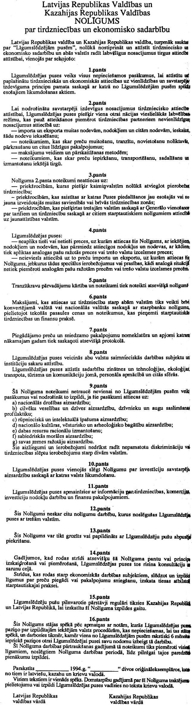 Par Latvijas Republikas Valdības un Kazahijas Republikas Valdības nolīgumu par tirdzniecības un ekonomisko sadarbību