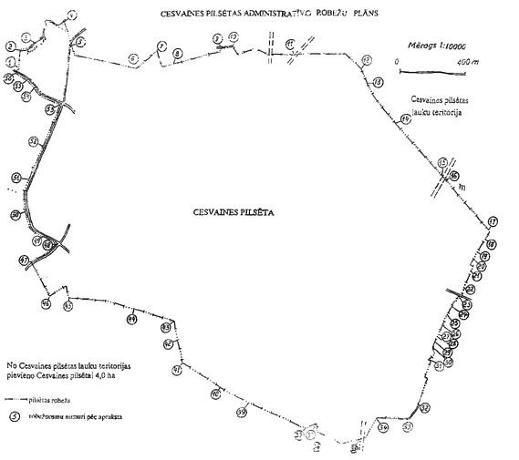 Pa Cesvaines pilsētas un saimniecības "Vesneri" zemes robežu |