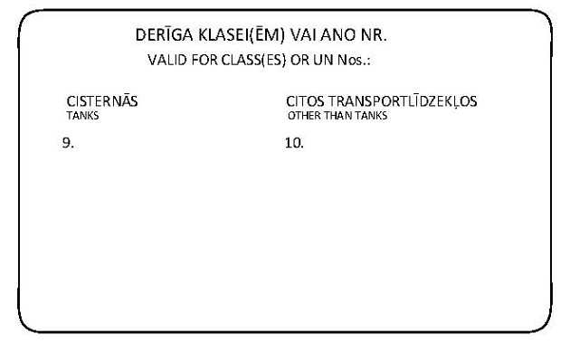Autovadītāja apliecība bīstamo kravu pārvadāšanai (paraugs)