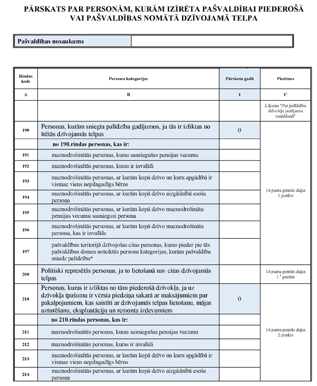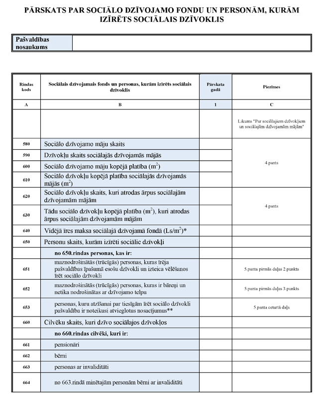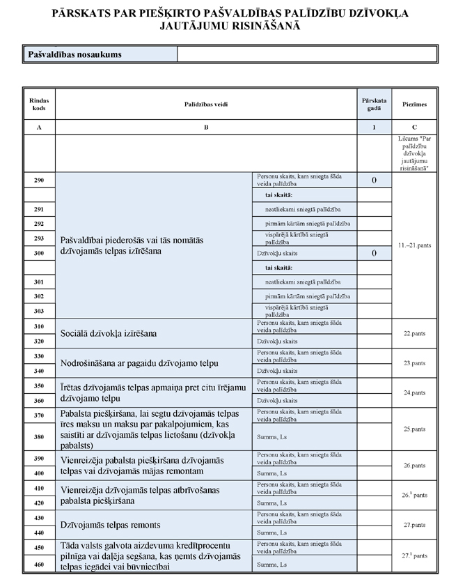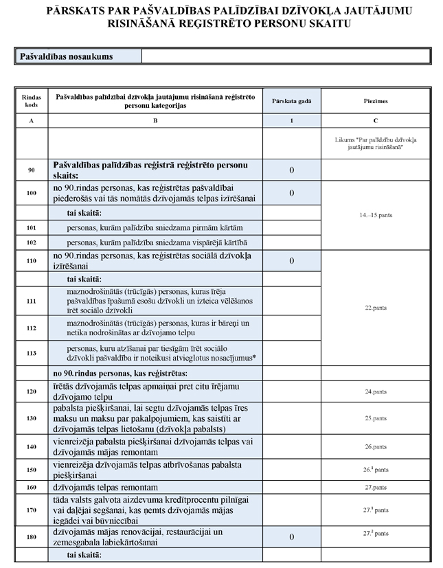 Noteikumi par valsts statistikas pārskatu par pašvaldību palīdzību dzīvokļa jautājumu risināšanā