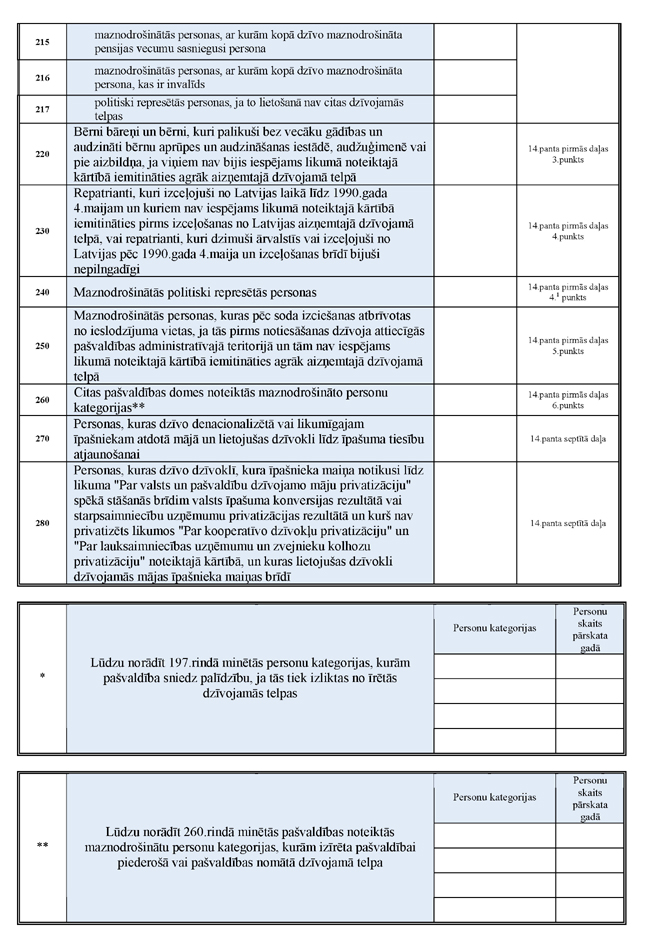 2.2. pārskats par pašvaldības palīdzībai dzīvokļa jautājumu risināšanā reģistrēto personu skaitu (2.pielikums);