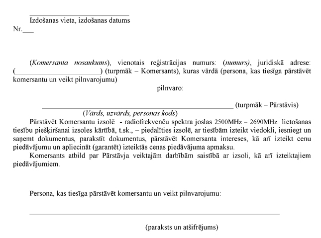 izsolei radiofrekvenču spektra joslas 2500MHz – 2690MHz