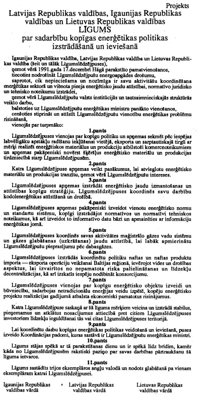Par Latvijas Republikas Valdības, Igaunijas Republikas Valdības un Lietuvas Republikas Valdības līgumu par sadarbību kopīgas enerģētikas politikas izstrādāšanā