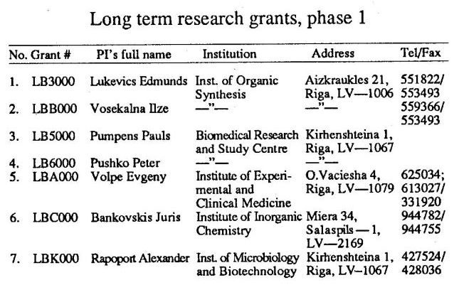 a) ISF nodrošinās vienoto komisiju ar to Projektu sarakstu, kurus I-atvijas zinātnieki iesniedza 1993. un 1994.gadā un kuriem ISF ir piešķīris naudas līdzekļus, pamatojoties uz ilgtermiņa pētījumu grantu programmu. Vienotā komisija šo sarakstu pārskatīs un nolems par ilgstošo naudas līdzekļu lielumu, kāds piešķirams katram Projektam. Katra Projekta atbalsta lielumam ir jābūt proporcionālam ISF piešķirtā iepriekšējā gada atbalsta līmenim, sākotnējiem apstākļiem paliekot iepriekšējiem;