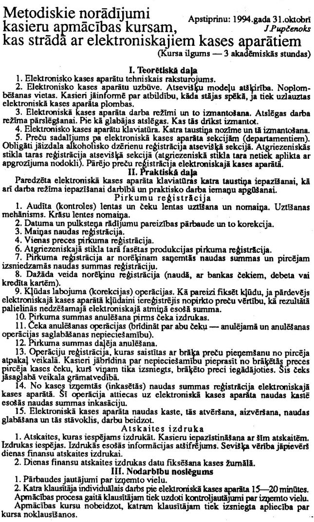 Saskaņā ar Latvijas Republikas Ministru kabineta 1994. gada 14. jūnija Noteikumu Nr.117 "Par nodokļu un citu maksājumu reģistrēšanas elektroniskajām ierīcēm un sistēmām 4.1. punktu, papildus Latvijas Republikas Finansu ministrijas 1994. gada 1.jūlija rīkojumam Nr.226 un 1994. gada 11. augusta rīkojumam Nr. 290 noteikt sekojošus uzņēmējdarbības veidus, kuros nodokļu un citu maksājumu reģistrāciju atļauts veikt, neizmantojot elektroniskos kases aparātus: