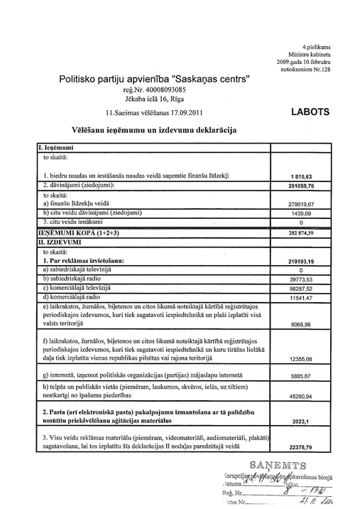 Darbības pārskati. Publicēts oficiālajā laikrakstā "Latvijas Vēstnesis", 30.11.2011., Nr. 188 https://www.vestnesis.lv/ta/id/240428