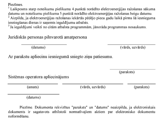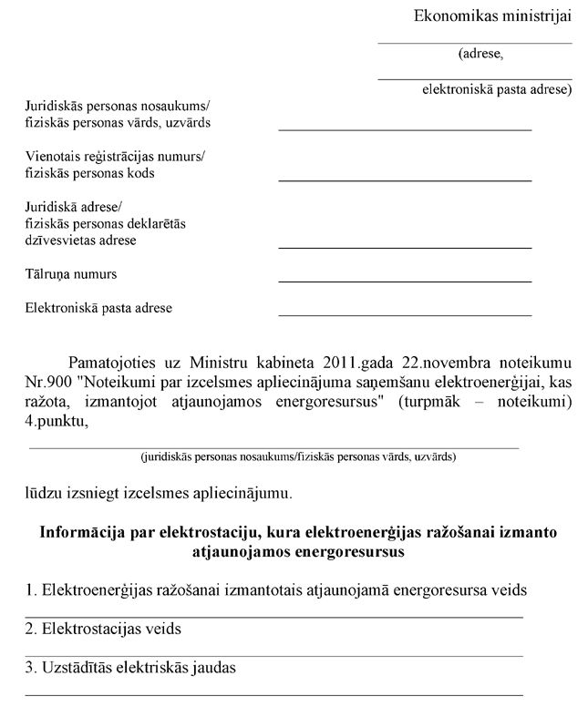 4. Lai saņemtu izcelsmes apliecinājumu, ražotājs papīra formā vai elektroniska dokumenta veidā iesniedz ministrijā iesniegumu izcelsmes apliecinājuma saņemšanai (pielikums) (turpmāk – iesniegums). Iesnieguma 7.punktā minētos datus apliecina tās sistēmas operators, kura elektrotīkliem elektrostacija ir pieslēgta.