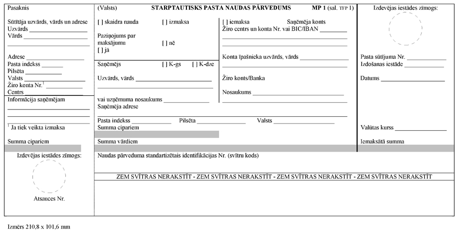 RP 1006 Atbrīvojums no maksas par pasta pakalpojumiem, ko piemēro pasta maksājuma pakalpojuma sūtījumiem
