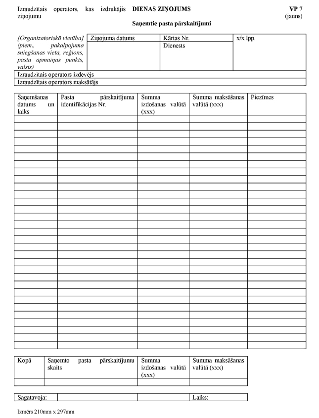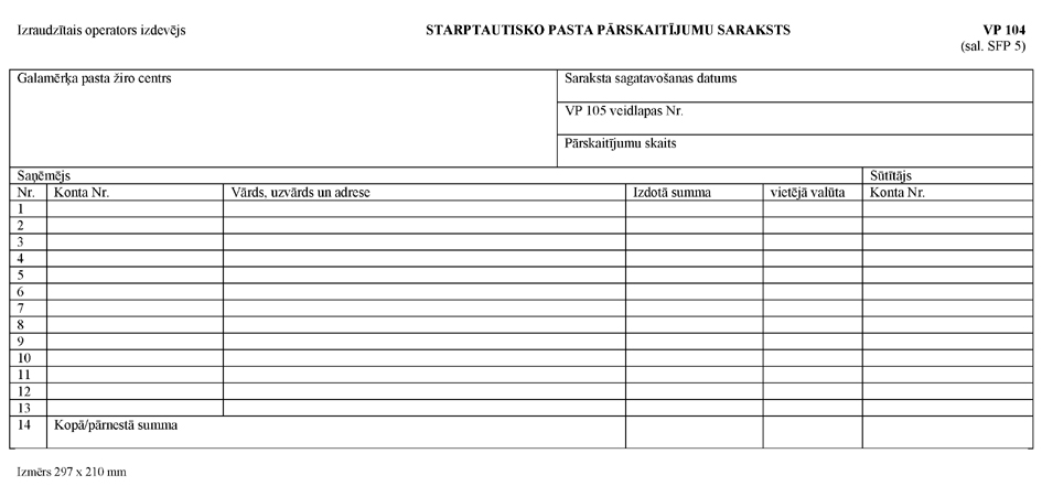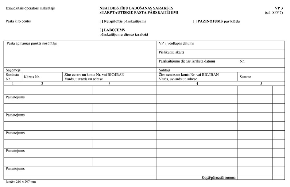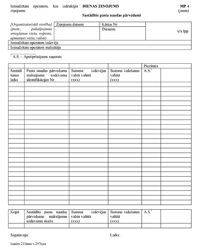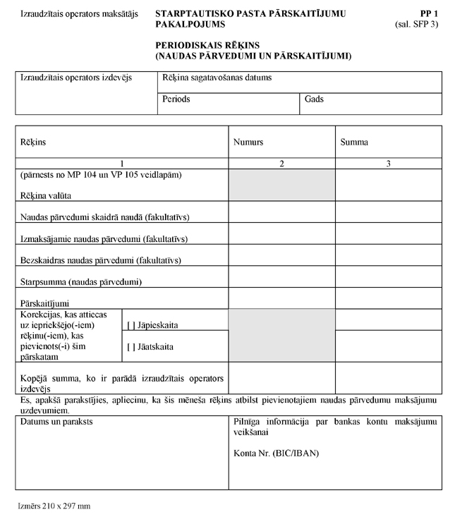 1. Izraudzītais operators maksātājs pasta maksājumu uzdevumu kopējo rēķinu sagatavo, izmantojot PP 3 veidlapu.