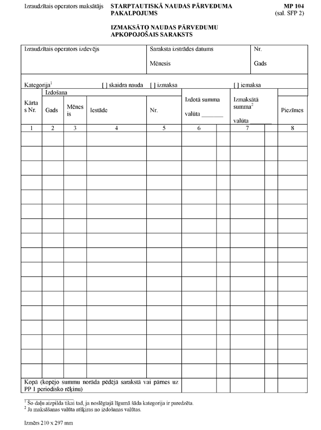 2. Lietotāja naudas līdzekļus iemaksā izraudzītā operatora izdevēja kopējā kontā ne vēlāk kā vienu dienu pēc attiecīgo pasta maksājumu uzdevumu sastādīšanas.