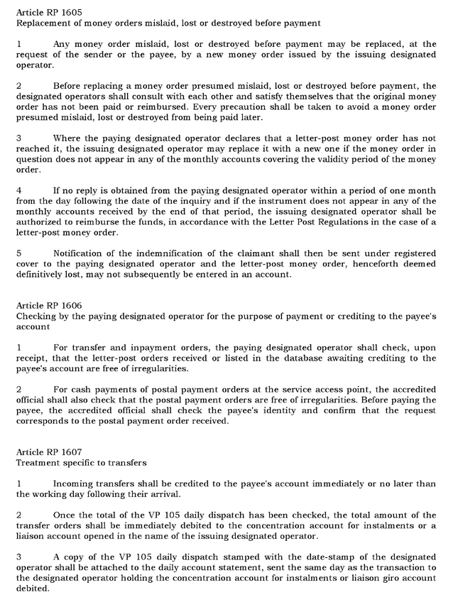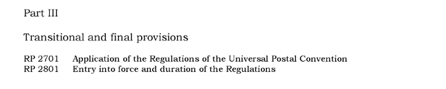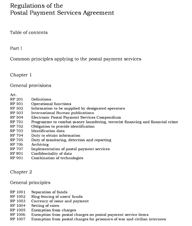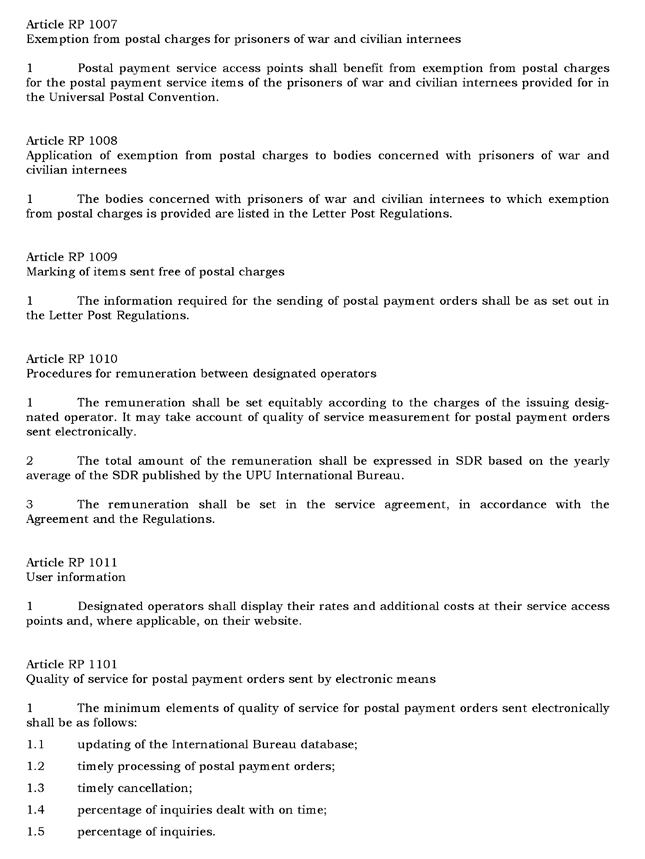 1. Visos gadījumos, kas nav skaidri paredzēti šajā reglamentā, pasta maksājumu pakalpojumiem piemēro Pasaules pasta konvencijas reglamentus.