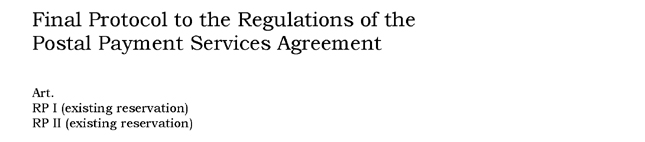 Šajā dienā noslēgtā Reglamenta Nolīgumam par pasta maksājumu pakalpojumiem apstiprināšanas brīdī Pasta darbības padome ir vienojusies par turpmāko.