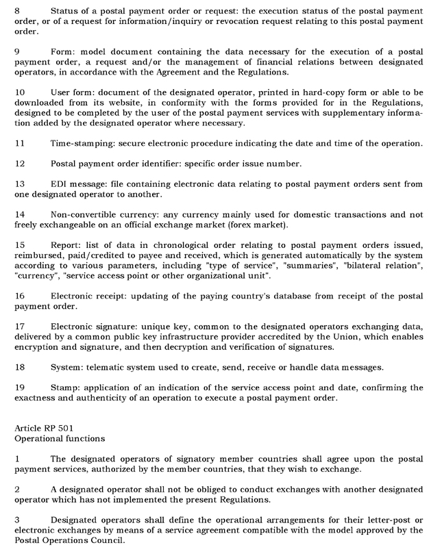 Reglaments Nolīgumam par pasta maksājumu pakalpojumiem