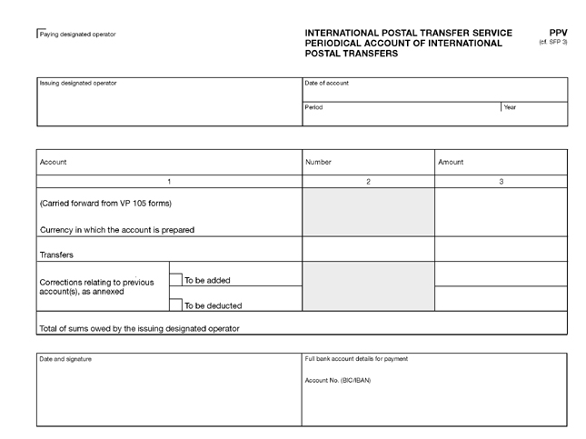 3.1. Ja norēķinu summas ir atšķirīgas un pēc tam, kad ir atskaitīta noteiktā robežsumma 6000 SDR, iemaksas summu aprēķina, pamatojoties uz pēdējo trīs periodisko rēķinu (PP 1, PPM un PPV) vidējo summu. Iemaksas summas aprēķināšanai attiecībā uz elektroniski pārsūtītajiem pasta maksājumu uzdevumiem var izmantot dienas ziņojumus par naudas pārvedumiem/pārskaitījumiem, kas ir izsniegti (MP 4 un VP 4), atmaksāti (MP 5 un VP 5), izmaksāti/kreditēti (MP 6 un VP 6) un saņemti (MP 7 un VP 7).
