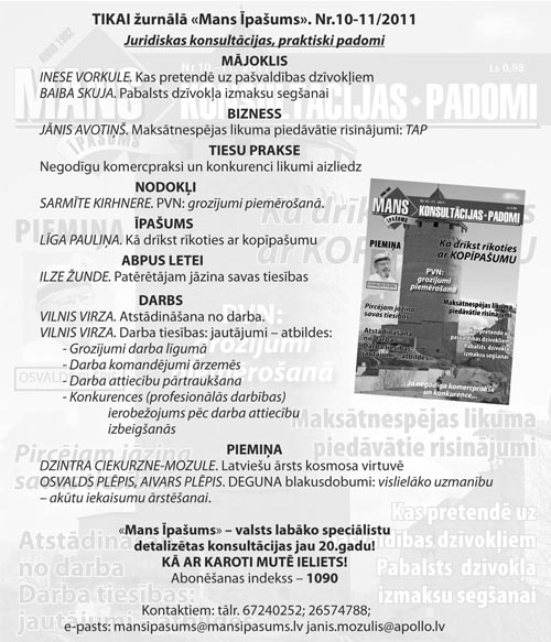 Valsts ieņēmumu dienesta (turpmāk - VID) Nodokļu kontroles pārvalde, pamatojoties uz likuma "Par Valsts ieņēmumu dienestu" 10.panta pirmo daļu, lūdz JĀNI PRIEDI, NMR kods 3003XX-XXXXX, iepriekš sazinoties ar galveno nodokļu inspektori A.Mačalovsku pa tālruni 65681804, 2011.gada 2.decembrī plkst. 11.00 ierasties VID Nodokļu kontroles pārvaldē Rīgā, Skanstes ielā 50B, uz audita nobeiguma sarunu, lai iepazītos ar Jāņa Priedes 2011.gada 19.septembrī uzsāktajā nodokļu auditā konstatētajiem faktiem un sniegtu paskaidrojumus par tiem.