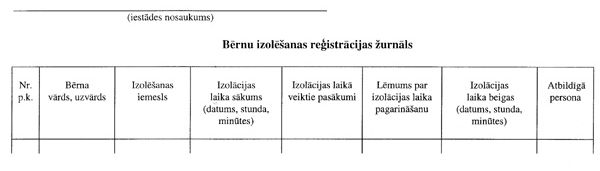 3. Persona, kura pieņēmusi lēmumu par bērna izolēšanu, nekavējoties par to paziņo iestādes vadītājam un izdara attiecīgu ierakstu bērnu izolēšanas reģistrācijas žurnālā (pielikums).
