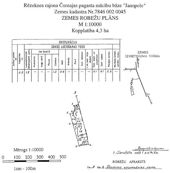 1.2. zemesgabalu 4,3 ha platībā (zemes kadastra Nr. 7846 002 0045, zemesgabala robežas norādītas 2.pielikumā) Rēzeknes rajona Čornajas pagasta Janopolē;