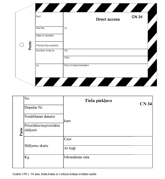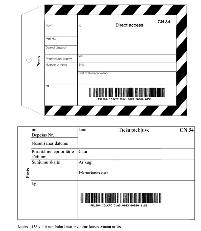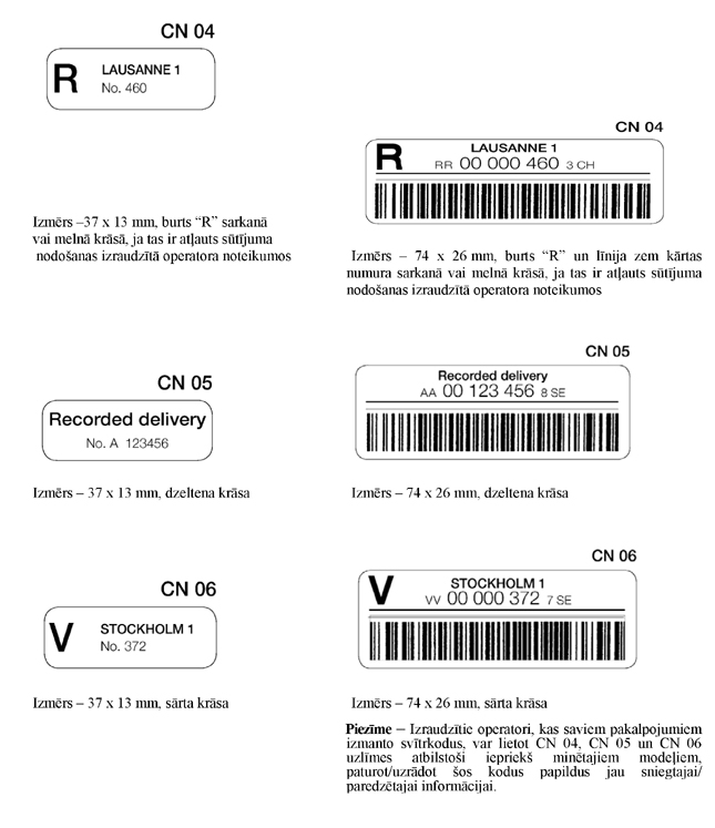 2.1. pievienot svītrkodu ar svītrām un/vai cipariem, kas atbilst tehniskajām specifikācijām, kuras atbilst UPU apstiprinātajiem standartiem;
