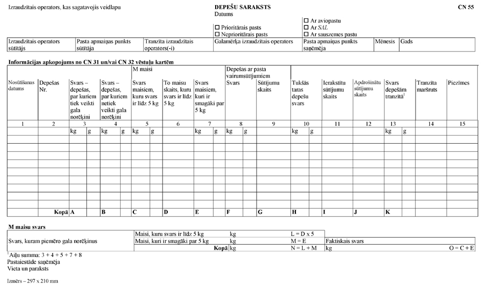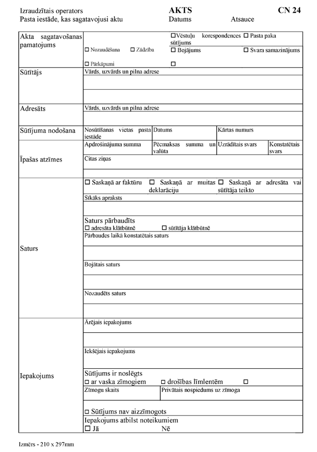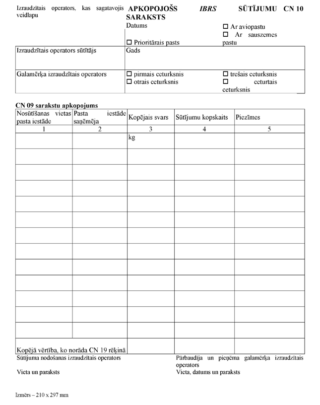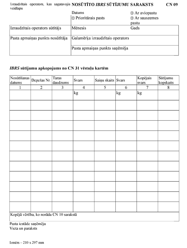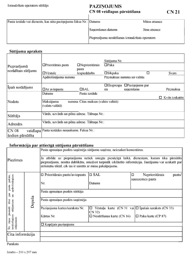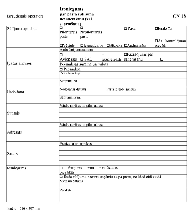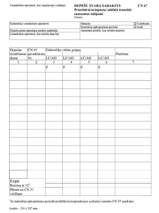 1. Neatkarīgi no RL 265. panta Amerikas Savienoto Valstu, Brazīlijas, Luksemburgas, Ungārijas Republikas un Vācijas izraudzītie operatori var mainīt CN 07 veidlapas izmērus un formātu.