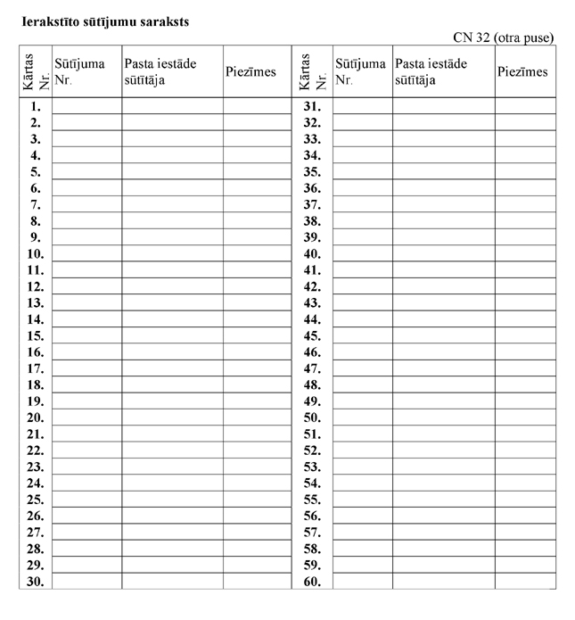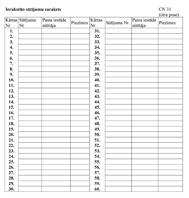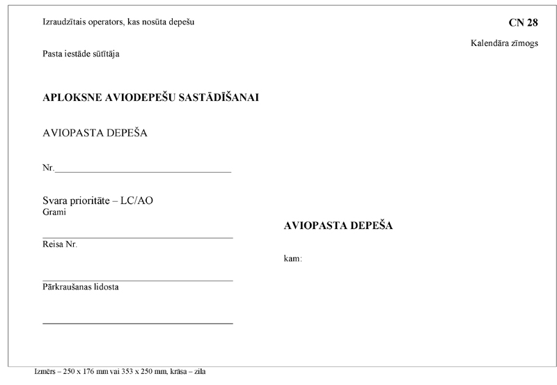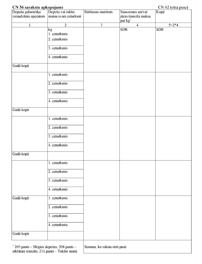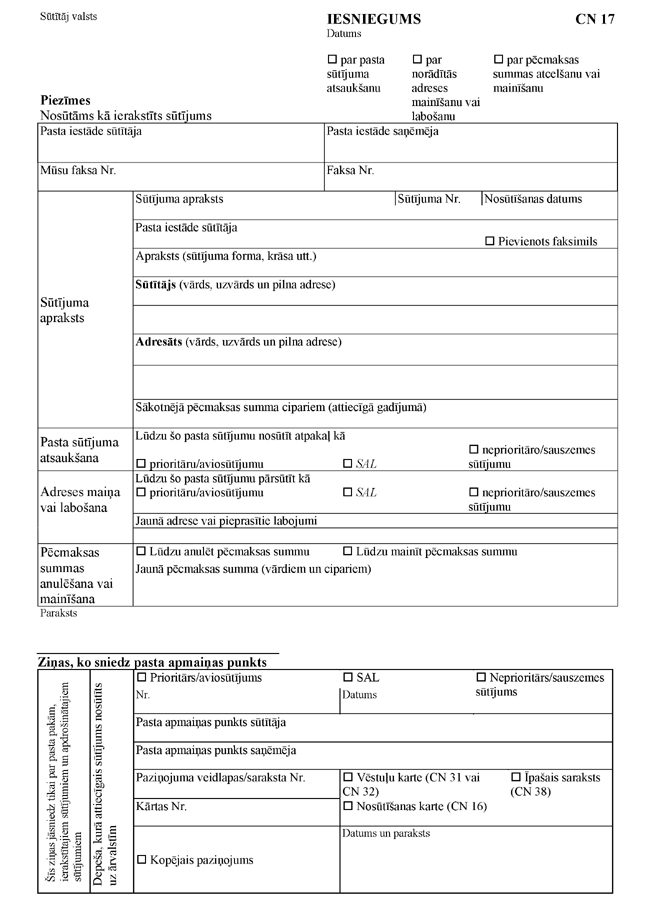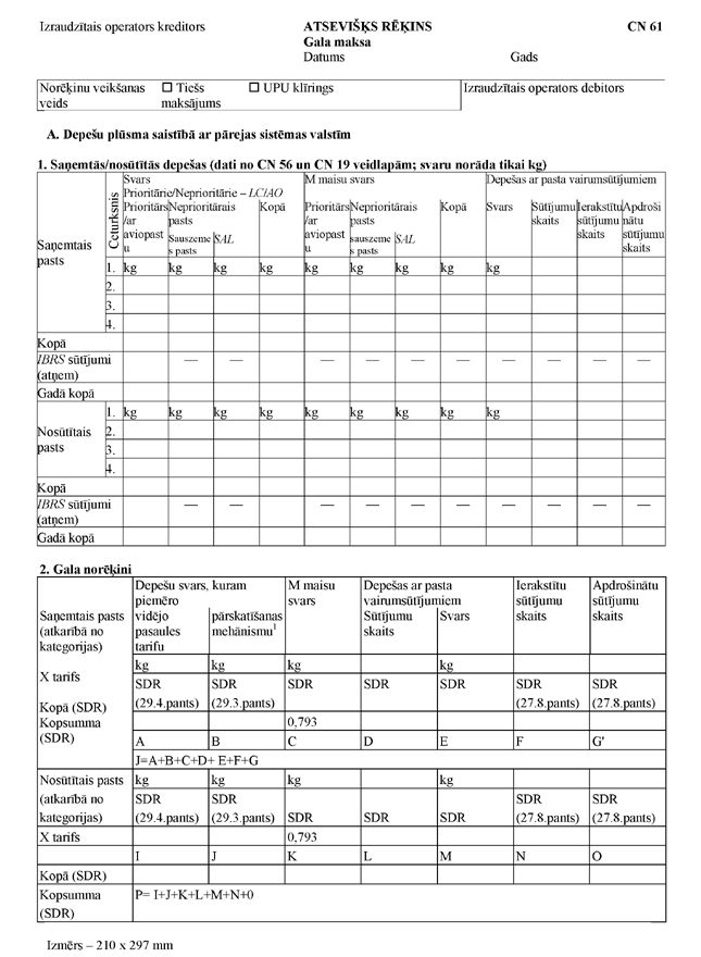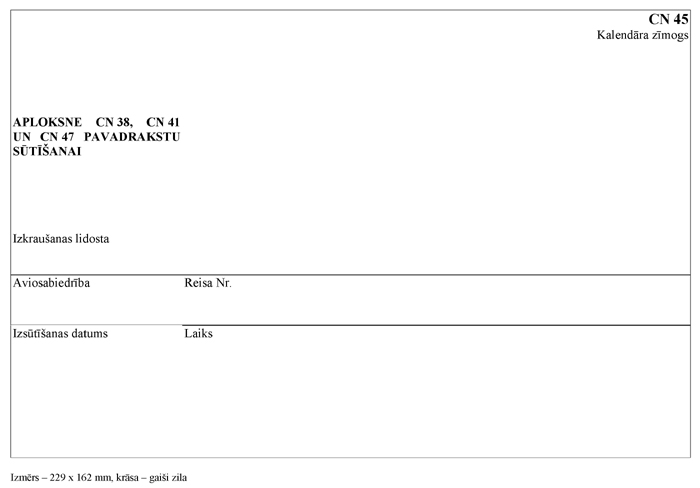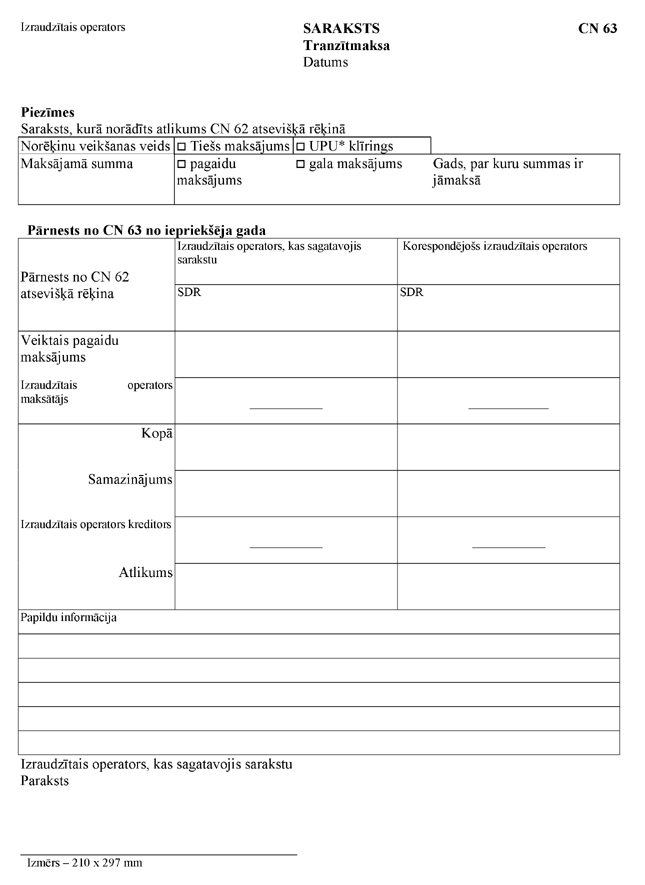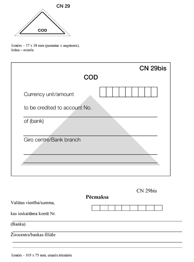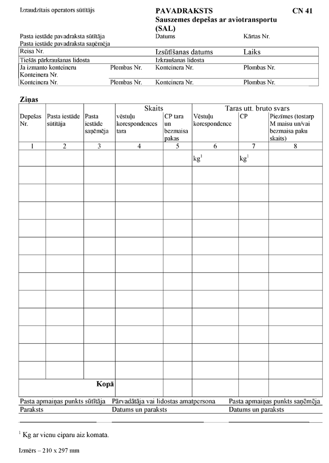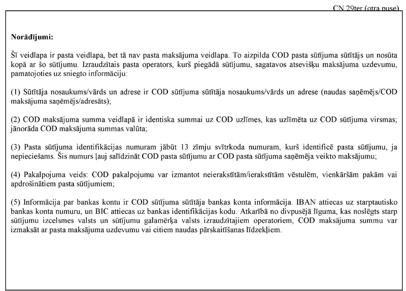 1. Azerbaidžāna, Bolīvija, Igaunija, Latvija, Tadžikistāna, Turkmenistāna un Uzbekistāna atzīst tikai tādas pārvadāšanas izmaksas, ko veic saskaņā ar norādījumiem par reisu CN 35 aviopasta sūtījumu maisu birkās un CN 38 pavadrakstos.