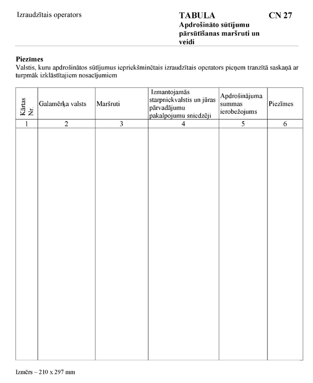2. Šos ierobežojumus nedrīkst apiet, veicot daļēju apdrošināšanu par summu, kas pārsniedz 630 SDR. Sūtījumi, kuru vērtība būs lielāka par minēto ierobežojumu, tiks nosūtīti atpakaļ uz nodošanas vietu. Deklarētā vērtība nedrīkst būt mazāka par sūtījuma komerciālo vērtību.