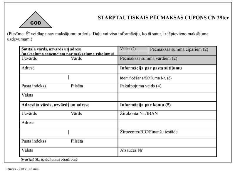 2. Šo ierobežojumu nedrīkst apiet, veicot daļēju apdrošināšanu par summu, kas pārsniedz 1000 SDR. Jauni ierobežojumi saistībā ar ierakstītu un apdrošinātu sūtījumu saturu nav noteikti. Sūtījumi, kuru vērtība būs lielāka par minēto ierobežojumu, tiks nosūtīti atpakaļ uz nodošanas vietu.
