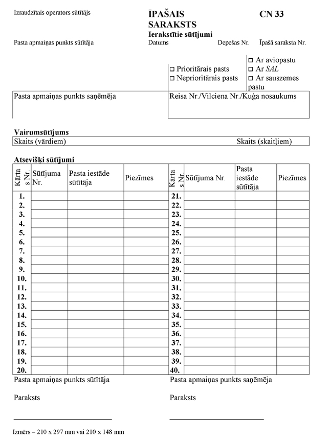 3.3. ailē „sūtījuma apraksts” izslēgt norādes uz tiem sūtījumu veidiem, kuriem netiek nodrošināts paziņojuma par izsniegšanu pakalpojums;