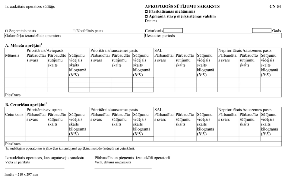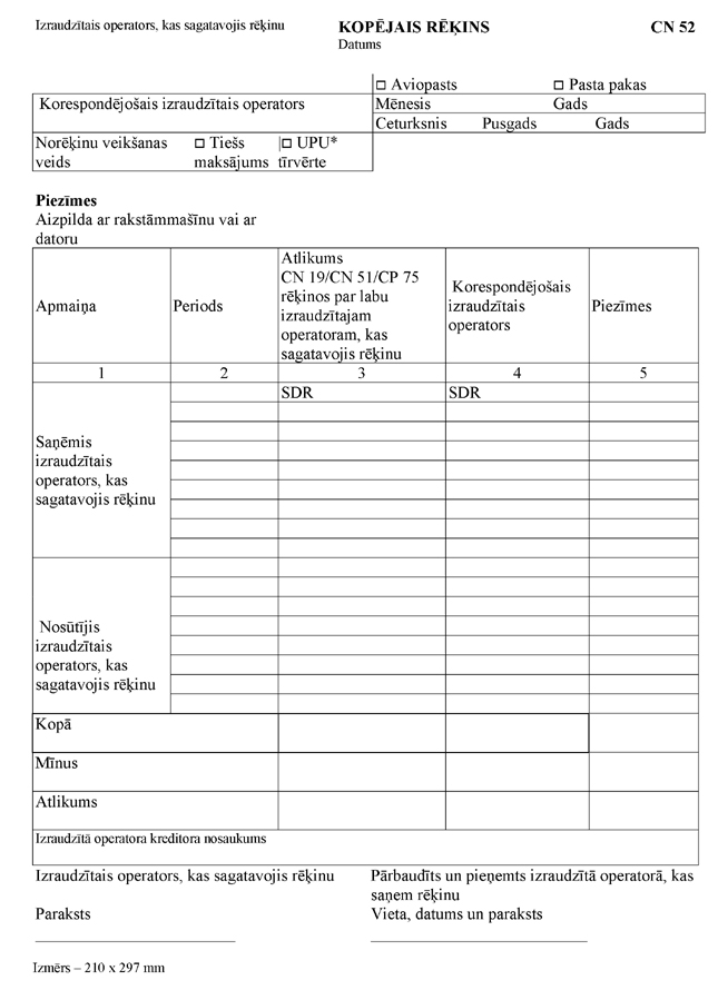 atsevišķo rēķinu un CN 52 kopējo rēķinu iesniegšana un