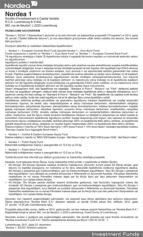 Paziņojumi akcionāriem, dalībniekiem, biedriem. Publicēts oficiālajā laikrakstā "Latvijas Vēstnesis", 23.12.2011., Nr. 202 https://www.vestnesis.lv/ta/id/241894