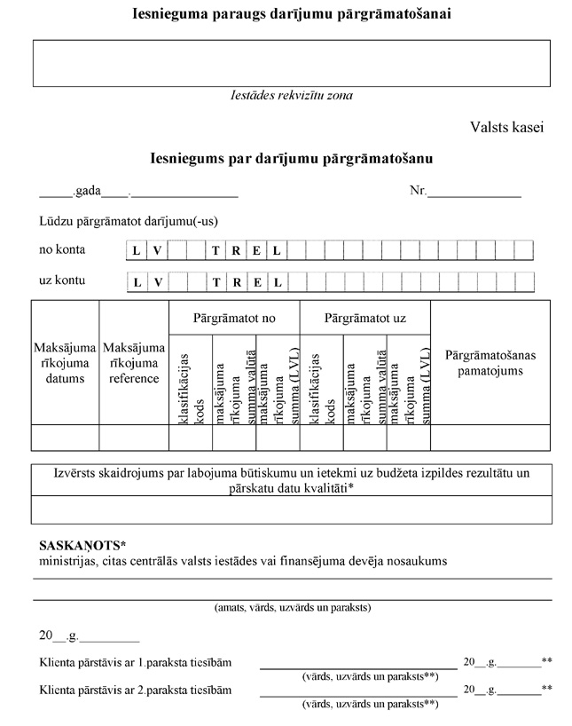 48. Šo noteikumu 46.punktā minētos maksājuma rīkojumus vai iesniegumus paraksta klienta pārstāvji ar 1.paraksta, 2.paraksta un 3.paraksta (ja tāds ir noteikts) vai 4.paraksta tiesībām atbilstoši Valsts kasē iesniegtajai apstiprinātajai kartītei.